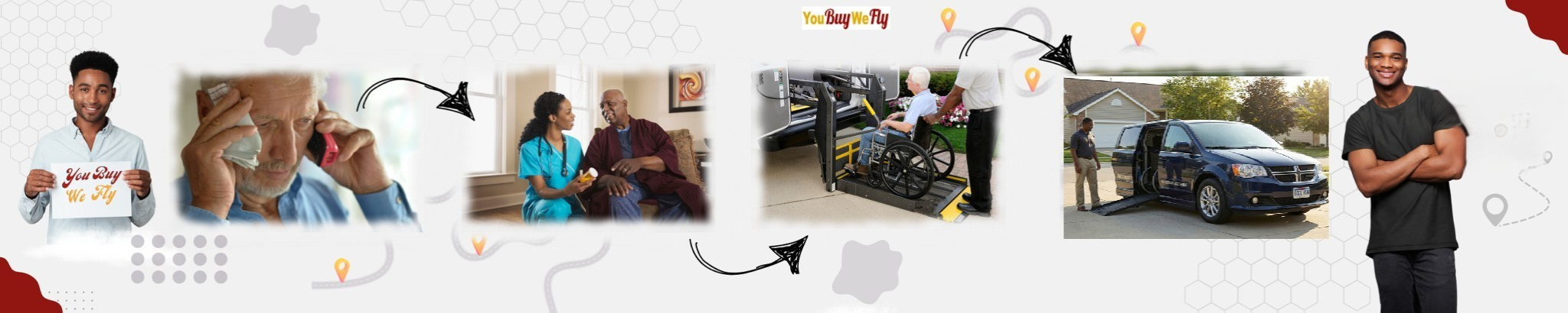 “You Buy We Fly” is providing non-emergency medical transportation services dedicated to ensuring the safe and efficient transportation of members from their home to medical facilities. We understand that medical emergencies and scheduled appointments can be stressful, and our team is committed to providing compassionate and reliable support in these crucial moments. Our fleet of state of the art transport vehicles, staffed by highly trained professionals, allows us to offer a wide range of services. Whether it’s non-emergency medical transportation, or scheduled medical appointments, “You Buy We Fly” is dedicated to delivering a seamless, secure, and comfortable journey for patients, while prioritizing their well-being and peace of mind throughout the entire process. Your health is our top priority, and we’re here to ensure you reach your destination safely and with the care you deserve.